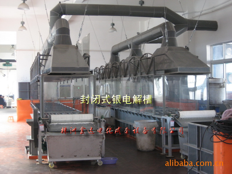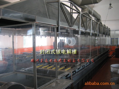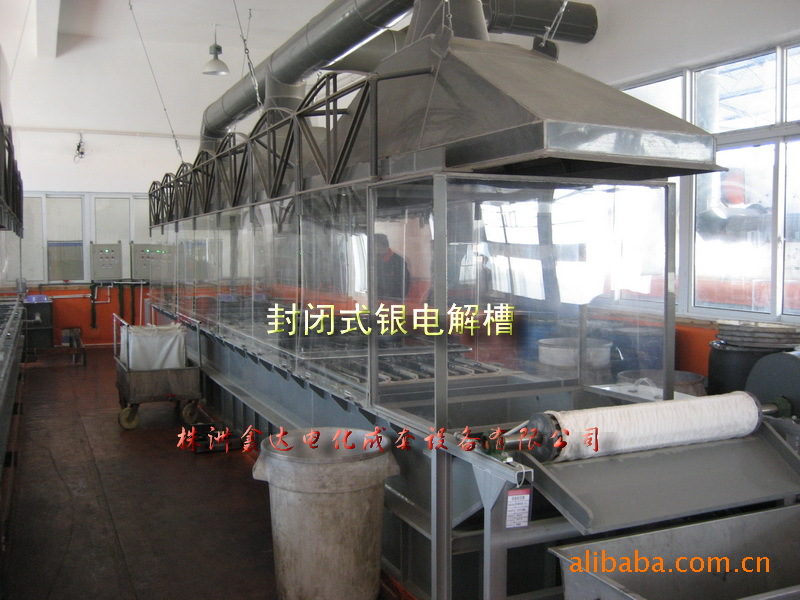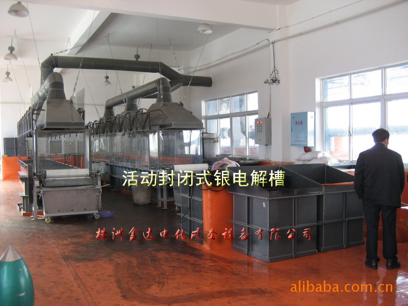 这是我公司生产安装的活动封闭式银电解槽,银电解生产时,可封闭银电解槽,使电解过程中产生的酸气不能进入生产车间,创造一个良好的生产环境,减少酸气的挥发,受到广大用户的欢迎。