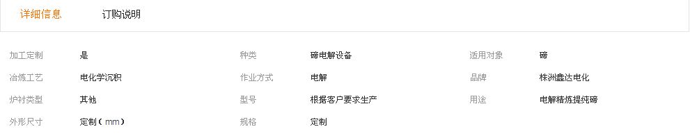 我公司专业生产各种电解成套设备,碲电解设备(包括:各个型号功率的KHS电解整流柜,各类槽如:浓酸槽、中继槽、高位槽、缓冲槽、废酸槽、洗槽等,储气罐、电极板、电烘箱,各种不锈钢配件制品,铜棒,过滤器,吸收塔等),其中为江西贵溪冶炼厂生产的碲电解设备为国内最大规模碲电解成套设备之一,从场地设计,到厂房布局规划,从设备生产到设备安装调试生产,提供全套整体服务,我公司生产的电解机(电解整流柜KHS)采用目前国内先进的控制箱,具有电效率高,节能,稳定,噪音低,安全系数高等优点,目前我公司正在老挝开展一个大型碲电解合资项目,该项目规模超过国内最大的碲电解项目。