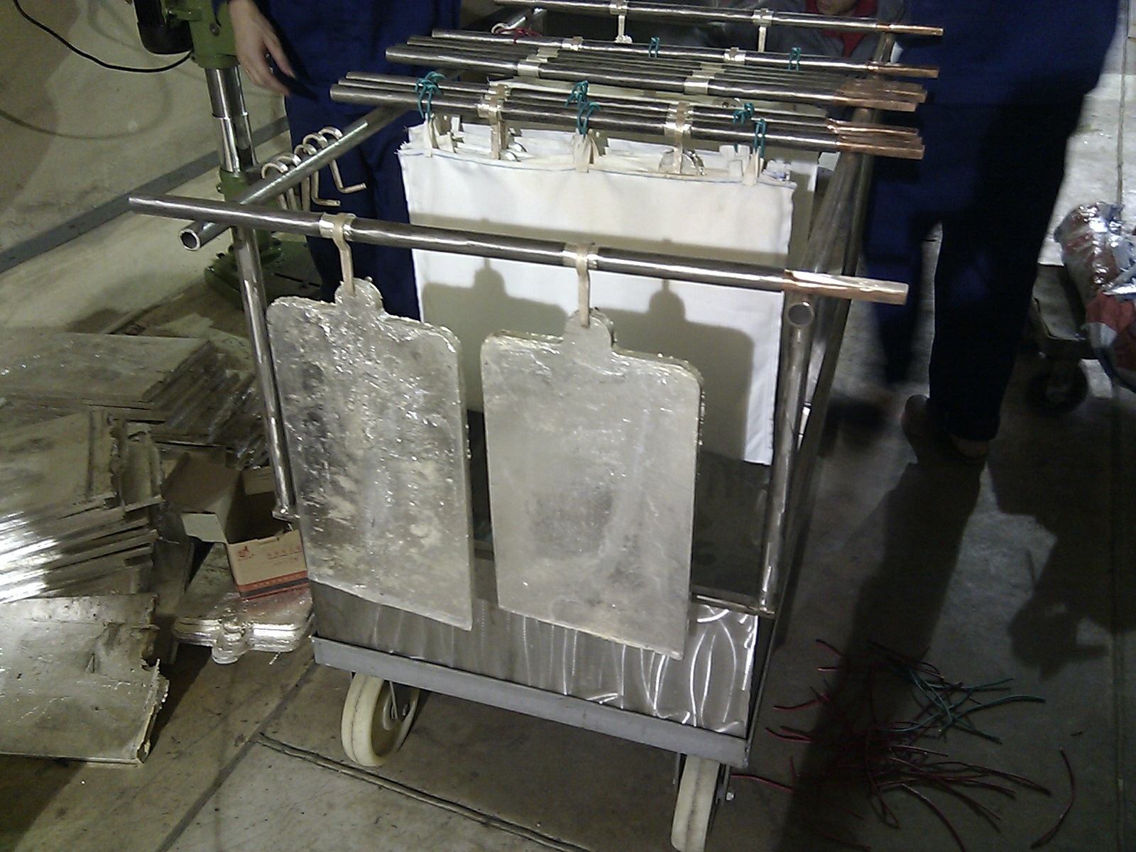 兰溪自立铜业工人制作粗银阳极板现场