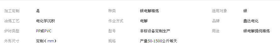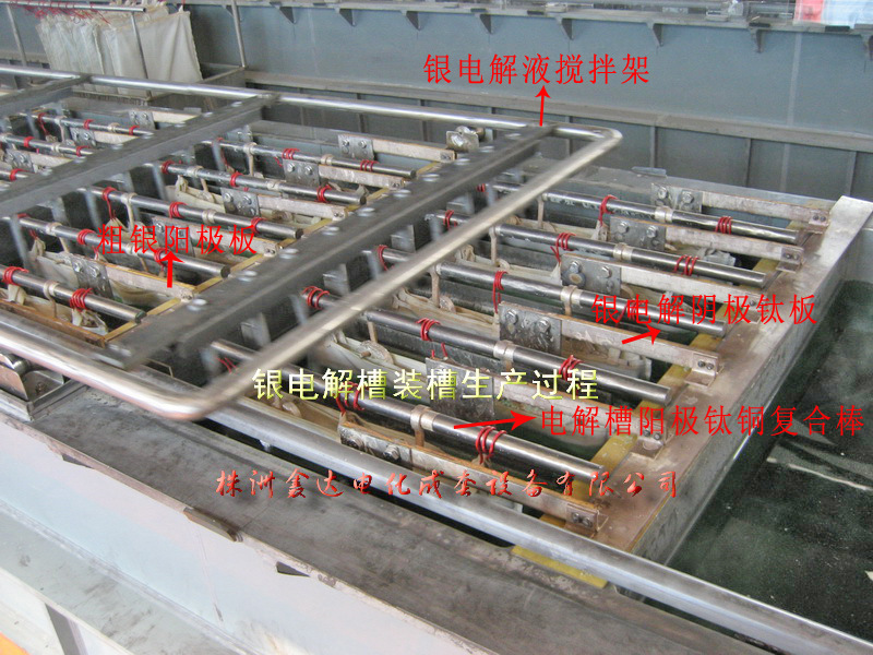 我公司还最新研发了具有自主知识产权的全自动银电解设备,银电解生产线,实现了银粉自动铲刮,自动输送银粉,电解液自动循环,银阳极板自动装出槽,是现在国内比较先进的银电解提纯成套设备。在香港和郴州都有客户在使用,效果极佳。实现了无人值守完成整套生产流程。