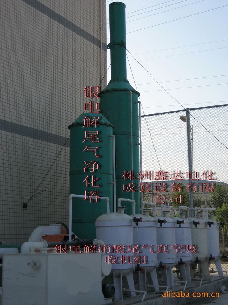 4、尾气处理系统:多级真空吸收机组(净化银电解生产过程中主要为造银电解母液过程中产生的含氮废气)、多级尾气喷淋吸收塔等
